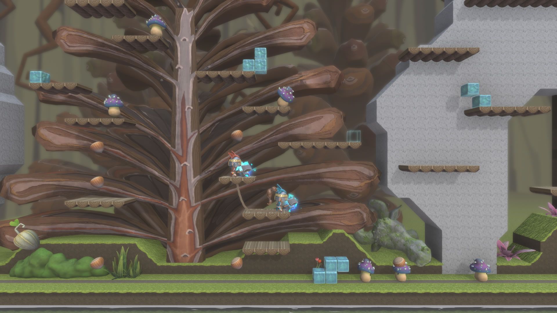 Empuña el Martillo de las Estaciones y explora islas laberínticas de inspiración vikinga plagadas de enemigos, saltos desafiantes y rompecabezas originales. Combina tu destreza plataformera junto a tu pareja para derrotar al taimado villano de este cuento nórdico, Fulvinter. Y no te despistes, ¡un segundo dúo de amigos puede unirse a la acción para competir por la gloria!